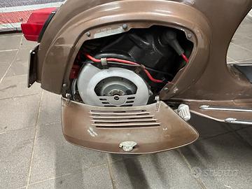 Effettuato il solo restauro conservativo su cerchi e marmitta, sostituito ammortizzatore anteriore e collocata nuova sella originale Piaggio, camere d'aria e pneumatici nuovi al 100%.