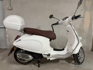 Vendo Vespa Primavera ABS 125 del 2021. Come nuova con solo 868 km fatti. La Vespa è dotata di bauletto originale Vespa e blocca manubrio Vespa (vedi foto). Sempre tenuta in garage. La vendo per inutilizzo.