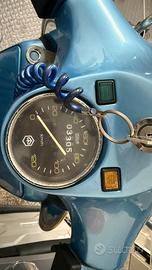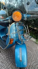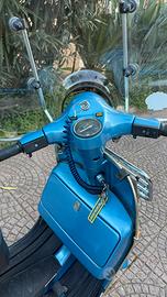 Carrozzeria con un segno d'usura su un fianco visibile in foto, colore azzurro, sella in buono stato.