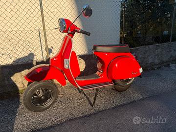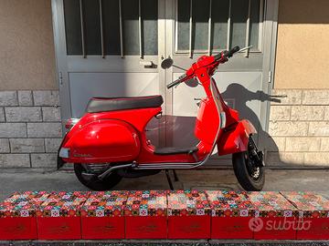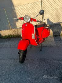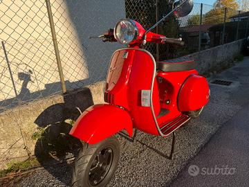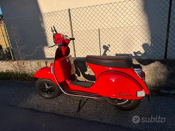 Vespa smontara completamente portata a sabbiare e a riverniciare,successivamente rimontata con tutte le guaine nuove, gommini nuovi, impianto elettrico nuovo, centralina nuova, freni, plastica manubrio ecc ecc.