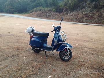 Vespa Px 150 E Arcobaleno, statore originale Piaggio appena cambiato, bobina pure, cerchi Sip tubeless, forcella anteriore sostituita con forcella con freno a disco, ammortizzatore anteriore Bitubo regolabile a gas, ammortizzatore posteriore Carbone, parabrezza Isotta, specchietti Fabbri (indistruttibili). Il contachilometri segna circa 60mila km ma è rotto, alcuni anni fa il motore è stato sostituito con un Dr 177. Iscritta Fmi, targa originale Roma, revisione regolare fino a 08/2027. Disponibili portapacchi cromati anteriore e posteriore, parafanghi cromato, frecce arancioni originali (tutto compreso). Sella rovinata, regalo sella Camel usata pochissimo.