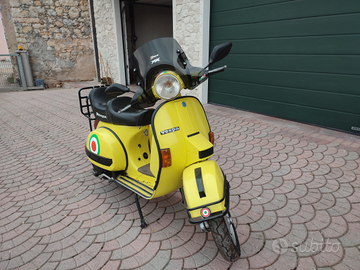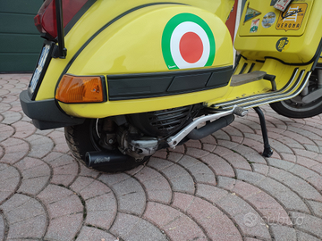 Vendo vespa PX 125 E arcobaleno targata VR..del 85 con miscelatore.. targa e libretto originali con libretto passaggio....perfettamente funzionante e sana.. usata per andare a lavoro e qualche raduno.. revisione appena eseguita gomme nuove freni nuovi frizione nuova il motore e carrozeria sono state rifatte dal precedente proprietario.. sella px magnum ho anche l'originale marmitta Polini ho anche originale e dispongo anche di specchietti originali..
