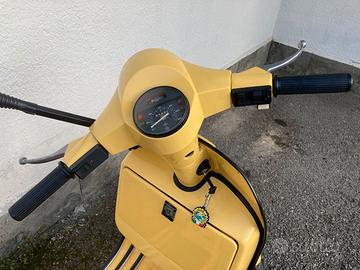Vespa PX200 Arcobaleno Elestart VSX1T immatricolata a marzo del 1998 con miscelatore. Targa AExxxxx. Ottime condizioni. Ultimo modello con freno a tamburo. Restaurata completamente da professionista circa 10 anni fa con circa 30000km dal restauro. Colore giallo oriente del 50° anniversario Vespa (non è una Classic). Carter Pinasco, ammortizzatore anteriore e posteriore Carbone. Faro alogeno per una visione notturna migliore (presente anche faro originale). Scarpette cavalletto in alluminio. Portapacchi posteriore. Sella appena rifoderata su telaio originale a molle. Batteria Malossi sostituita da poco. Pneumatici buone condizioni. Scadenza revisione settembre 2026. Libretto originale. Regolarmente utilizzata.