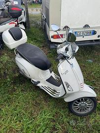 Vendo Vespa Sprint 50 4 tempi originale Piaggio, colore bianco, completa di bauletto posteriore in tinta e parabrezza alto. Scooter elegante e affidabile, ideale per città e uso quotidiano.