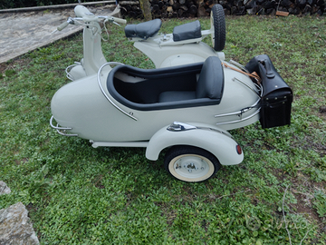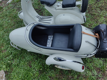 Vendo , dalla mia collezione privata, vespa Struzzo sidecar in vetroresina del 1957 restaurata maniacalmente, targa oro Fmi. Attualmente monta motore Px 150 ( nuovo in tutte le sue componenti, da rodare e perfettamente adattatto) ma , a corredo, il suo motore originale rimesso a nuovo in tutto. La valigia non è di mia proprietà x cui non compresa nella vendita. Il prezzo non è trattabile e non rispondo a messaggi ma solo a telefonate ( dopo le 15). X maggiore visibilità: vespa px, vespa rally, pentarò, vespa GS, vespa 300.