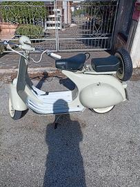 vendo a euro 7800 vespa 150 vl1 detta struzzo, prima serie abbastanza rara costruita in pochi esemplari, restaurata accuratamente rispettando il più possibile l'originalità, colore originale grigio 15048, documenti e targa originali da passaggio iscritta FMI targa oro.