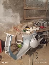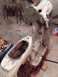 vendo vespa composta da telaio, cofano posteriore sinistro sabbiati e con epossidico, manubrio completo di contachilometri, profili pedana e motore, cavalletto il tutto e da restaurare € 680 poco trattabili si vende visto piaciuto Trasporto a carico acquirente NO PERDITEMPO!!