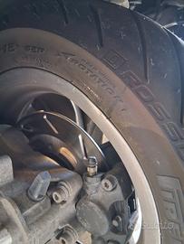 A giugno appena comprata eseguito tagliando completo,montato cerchi della 300 e gomme nuove,rifoderata sella,impianto frenante posteriore revisionato con sostituzione disco pasticche e olio , 4 frecce nuove originali piaggio così come i due bordoscudo, ammortizzare anteriore yss regolabile e silent block, filtro aria malossi,il tutto ha circa 3000km.