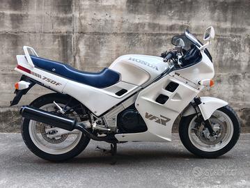 Vendo immortale vfr rc24 prima serie con nulla da fare.giá fatto tagliando completo,olio,filtro olio filtro aria,candele,filtro benzina, regolazione valvole,revisione forcelle/pompa freno e frizione/cilindretto frizione,mono aftermarket,catena corona pignone, batteria nuova,pulizia/allineamento carburatori,carrozzeria perfetta,cerchi verniciati a polvere.kit attrezzi, libretto manutenzione iscritta FMI con CRS a libretto.moto di importazione,non esitate a chiedere .