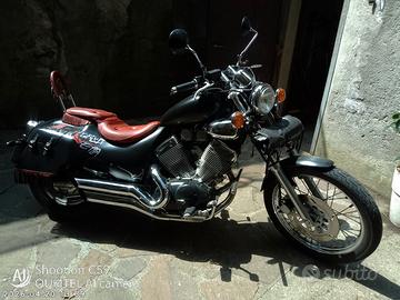 vendo bellissima Virago 535 appena eseguito cambio gomme, olio motore, filtro olio, batteria nuova, carburatori restaurati, cuscinetto sterzo, freni anteriori, candele nuove,fari supplementari 30000 km originali ..no bollo 30 anni di moto ma come nuova