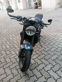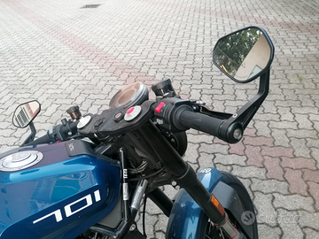 Moto divertentissima con tanta coppia e che spinge fino a 8000 rpm, in stile 'café racer' svedese. Ultima versione realizzata colorazione bicolore blu/bianco con cerchi a raggi. Sospensioni regolabili, acceleratore ride by wire, cambio quick-shift (la frizione volendo la si usa solo in partenza), abs, controllo di trazione, fari full led. Catena nuova, olio nuovo, gomme 90%. Moto sicura, leggera e scattante. Ottima in città, divertente tra le curve nei weekend. Specchietti bar-end omologati. Assieme alla moto kit monoposto dedicato e specchietti originali.