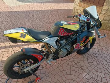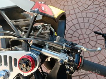 Vendo mini gp 190, monta motore zs 190 con 5 ore all'attivo, forcelle grm regolabili anche nel precarico, mono dnm, gomme pmt, pasticche anteriori sinterizzate, pinza freno juan, pomoa freno brembo, radiatore maggiorato con tubi in treccia made in italy, kit pedane ohvale, le carene presentano segni di usura sul codone posteriore