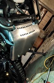 torretta attacco GPS, voltimetro batteria, presa 12v, orologio digitale con temperatura e umidità, valvole sfiato gas montati sui tappi forcella, riser per alzare di 20mm il manubrio e pedane ribassate di 20mm per una guida da in piedi ancora più naturale, paramotore in ergal, guida catena acerbis e molti particolari in ergal.