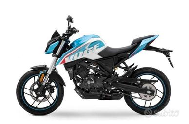 La VOGE Brivido 125R è dotata di un motore nuovo dal primo all'ultimo bullone e si caratterizza per i volumi estremamente compatti. Il monocilindrico raffreddato a liquido da 124,8 cc con distribuzione a doppio albero a camme in testa, è naturalmente omologato Euro 5 ed eroga 14,1 cavalli a 9.500 giri/min e 12,1 Nm a 8.000 giri/min.Completano il design la sella del pilota studiata per garantire la massima abitabilità ed ergonomia, e quella del passeggero, che pur non interferendo con le linee slanciate della moto, offre una superficie ampia e comoda. Le ruote in lega da 17" con wheel stripes azzurre rendono ancora più visibile e appariscente questa piccola 125. Prezzo di Listino 2.990,00 + spese di immatricolazioni