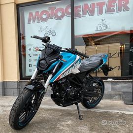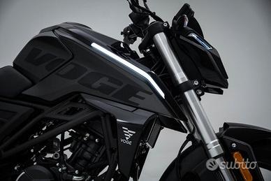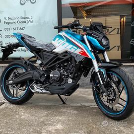 VOGE Brivido 125R.Naked con motore monocilindrico 4 tempi EURO5, ruote in lega da "17 con frenata ABS, forcella upside-down da 35mm. altezza sella 815 mm. peso 129kg. serbatoio 10 litri, consumo 43km/l, velocit massima 110km/h.Prezzo promo Euro 2.790,00 anzich Euro 2.990,00 (escluse spese imm e m/strada di Euro 400,00)Disponibile nel colore azzurro o total black