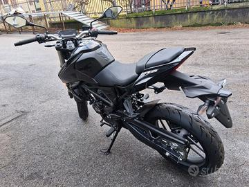 ciclistica con telaio a traliccio in acciaio, forcellone in alluminio e forcella a steli rovesciati assicura un feeling di guida da vera sportiva. distribuzione a doppio albero a camme in testa, ed eroga 11 kW Telaio Tubi di acciaio alto resistenziale Sospensione Anteriore: Forcella upside-down 35 mm Sospensione Posteriore: Ammortizzatore singolo a precarico regolabile Freni : Sistema ABS a doppio canale Massa a vuoto 129 kg Serbatoio Carburante 10 litri Velocit Max 110 km/h Consumo 43 km/l