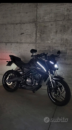 specchietti a manubrio, portatarga, manopole, pedane guidatore sportive in metallo, frecce anteriori e posteriori nano led fumè OMOLOGATE, piccole alette decorative sulla maschera del faro, copertura forcelle adesiva di texture carbonio opaco, strisce sui cerchi, piccoli adesivi estetici sul parafango anteriore... inoltre manubrio e copri marmitta somo stati verniciati in modo professionale di nero opaco.