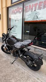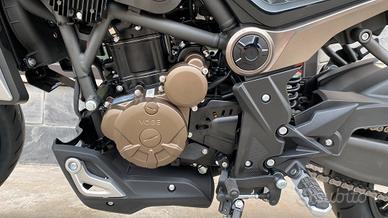 Monocilindrico 4 tempi VOGE modello TROFEO 300AC, EURO5, raffreddamento a liquido, 25cv, 18,2 kw, doppio albero a camme in testa (DOHC), 4 valvole, 6 marce, velocità massima 125km/h, consumi 34 km/l serbatoio carburante da 15 litri, peso a vuoto 159kg. altezza sella 800mm. forcella upside-down diametro 35mm. doppio disco anteriore da 220mm., sistema con ABS a doppio canale, pneumatici da "17. Una moto capace di coniugare passato e presente, stile e innovazione, bellezza e potenza. In pronta consegna presso la nostra concessionaria al prezzo listino Euro 3890,00 sconto Euro 400,00 prezzo promo Euro 3.490,00 (escluse spese per immatricolazione, messa in strada e Voge Care Euro 400,00).
