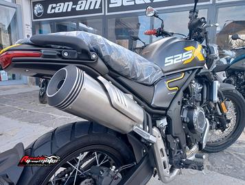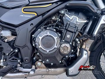 Voge TROFEO 525 ACX Scrambler a prezzo promo da €6.790 a €5790"Advanced Classic", la Trofeo 525 ACX Scrambler è uno straordinario connubio di classico e moderno.L'incontro tra le forme eleganti e sinuose del passato e le più avanzate tecnologie a disposizione oggi.Motore Ciclo Bicilindrico 4 TempiMarca Tipo Motore VOGE KE500-Raffreddamento LiquidoCilindrata 494ccPotenza Max 35 kW (47,6 CV) a 8.500 giri/minDistribuzione Doppio albero a camme in testa (DOHC) - 4 valvoleCambio 6 marceTelaio Tubi di acciaio alto resistenzialeSospensione Anteriore Forcella upside-down ø 41 mmSospensione Posteriore Ammortizzatore singolo a precarico regolabileFreni NISSINant. doppio disco ø 298 mmpost. disco ø 240 mmsistema con ABS a doppio canalePneumatici Ant. 110/80-19 Post. 150/70-17Dimensione 2.150 x 820 x 1.230 mmInterasse a carico 1.450 mmAltezza Sella 820 mmMassa a vuoto 185 KgSerbatoio Carburante 19 litriVelocità Max 160 km/hConsumo 24 km/l (Secondo ciclo WMTC)Emissioni EURO 5 (CO2 95 g/km)__________________________________________Siamo una concessionaria specializzata nella vendita di moto, quad, moto d'acqua, scooter, minicar, minimoto, moto da cross, auto, accessori e abbigliamento dedicato.Contattateci per visionare i veicoli disponibili presso le nostre sedi: Pietramontecorvino (Fg), Termoli (Cb).o Possibilità di consegna in tutta Italia.o Assicurazione e disbrigo pratiche di voltura e immatricolazione direttamente in sede.o Possibilità di finanziamento anche senza anticipo.o Ritiro usato con super valutazione e incentivo rottamazione.o Permute con auto, moto, quad, pit bike, moto d'acqua, bici, ecc.o Extra sconto su abbigliamento e accessori riservato a tutti i clienti che acquistano una moto presso il nostro showroom.I contenuti degli annunci necessitano di conferma telefonica al numero: in quanto suscettibili di errore, pertanto non hanno validità contrattuale.Per info: -