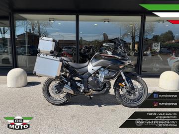 Splendida Voge Valico 500 DSX immatricolata 2023, moto adventure ideale per turismo, commuting e fuoristrada leggero. Accessoriata con borse laterali e bauletto in alluminio.