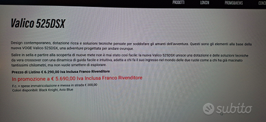 Vendo VOGE VALICO 525 DSX praticamente nuova. Comprata a giugno 2025 solo 850km sempre in città. Vendo causa inutilizzo. Completa di tutti gli optional di serie più il tris di valige in alluminio nero originali Voge. Garanzia ufficiale per ancora un anno e mezzo. Sono sempre stato uno scooterista e per la vita che faccio pensavo potesse andare bene ma sono molto più comodo con lo scooter. La moto sarebbe in vendita in concessionaria ufficiale Voge al prezzo offerta di 5690? più 300? di messa su strada. totale 5990 più set valigie al costo 1150?. totale 7140?