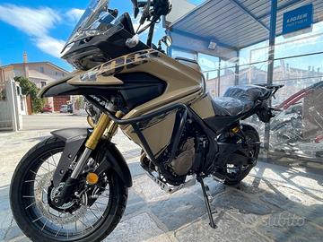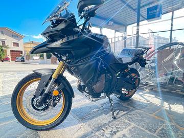 La VOGE DSX 625 è una crossover media, pensata per chi vuole una moto versatile che vada bene sia su asfalto sia su strade sterrate leggere. Motore bicilindrico parallelo da 581 cc (cilindrata effettiva), raffreddato a liquido, con [?] 63,9 CV a 9.000 giri/min e 57 Nm a 6.500 giri/min. Telaio in tubi d'acciaio ad alta resistenza; sospensioni KYB: forcella upside-down da 41 mm regolabile davanti, monoammortizzatore regolabile dietro con leveraggio progressivo. Cerchi a raggi (tubeless) da 19'' davanti e 17'' dietro, dimensione standard per strade miste, con gomme adatte a sterrato leggero. Altezza sella di 835 mm da terra, che la rende non proprio bassissima; luce a terra elevata per migliorare il passaggio su terreno irregolare. Peso a secco/intorno ai 206 kg, serbatoio da 17,6 litri, che le conferiscono autonomia e presenza ma richiedono un po' di forza in manovra da fermo. Equipaggiamento ricco: fari full-LED, parabrezza regolabile, protezioni (paramani, barre laterali), cavalletto centrale, sensore pressione pneumatici; ABS a doppio canale disinseribile, controllo di trazione, modalità di guida. Velocità massima dichiarata di 183 km/h, consumo medio di [?] 26 km/l secondo il ciclo WMTC. È disponibile anche in versione depotenziata (35 kW) per patente A2; ideale per viaggi, pendolarismo, uso misto, anche se non è una "enduro pura".