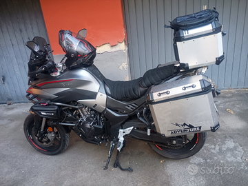 Vendo ottime condizioni Voge 500 modello DS, guidabile con A2 , consumi 28km/1LT, ottima per raduni e per chi vuole iniziare Adventure, la moto è originale in tutto con aggiunta paramani,faretti, tris valige originali, borsette accessori, leve freno antipiega, vendo causa inutilizzo.