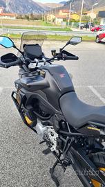cerchi tubless con sensori pressione e temperatura pneumatici, manopole e sella riscaldate , cruise control, dash cam, paratelaio paramani , faretti aggiuntivi LED, cambio elettronico up e down, radar posteriore, TFT display bluetooth wifi, 4 mappe motore selezionabili TCS (disinseribile).