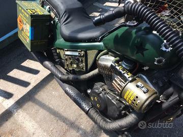 Lei è la mia RatBike non da esposizione ma una vera rat bike su base vt600, ogni singolo pezzo ha una storia come la maschera antigas russa, il mirino di una mg42 la radio militare del Vietnam che ora ospita il quadro strumenti, i nastri di proiettili inerti 7,62, la cassetta di metallo che conteneva la dinamite o l altra cassetta porta munizioni e tanti altri dettagli.