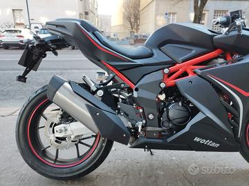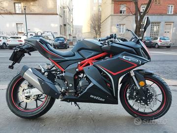 FINANZIAMENTO TOTALE TASSO ZERO SENZA INTERESSI Wottan GP1 125 modello 2026, euro 5+ colore dark soul, motore raffreddato a liquido, doppio disco freno anteriore con tubi aeronautici in treccia di acciaio, forcella rovesciata regolabile, faro DRL, , strumenti TFT a colori con connessione e navigazione, forcellone in alluminio, 24 mesi di garanzia. La moto 125 sportiva nero cara in commercio, finanziabile anche al 100% con tassi agevolati, rateizzazione personalizzata e possibile spedizione a domicilio in tutta Italia. Valutiamo permute usato con usato, è gradito il contatto tramite mail o telefono.ACQUISTIAMO LA VOSTRA MOTO USATA CON PAGAMENTO IMMEDIATO, TRATTATIVA SUPER VELOCE E PER MAGGIORI INFORMAZIONI NON ESITATE A CONTATTARCI