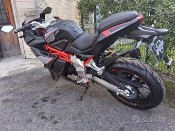 telaio concepito con un chiaro orientamento verso il mondo delle corse, si combina con un motore monocilindrico raffreddato a liquido.Il posto di guida progettato per offrire comfort e facilit di guida per un utilizzo quotidiano, grazie all'altezza sella di 760 mm che permette alla maggior parte degli utenti di toccare il suolo con entrambi i piedi. Allo stesso tempo, componenti come il cupolino, il semimanubrio e le pedane offrono al pilota la possibilit di godersi una guida pi sportiva, mantenendo un controllo assoluto e preciso.avantreno,che presenta un doppio freno a disco a margherita da 300 mm e pinze ad ancoraggio radiale a doppio pistoncino.Il tutto completato dalla robusta forcella anteriore di ampio diametro e dal monoammortizzatore posteriore125cc, monocilindrico, 4 tempi, 4 valvole, raffreddato a liquido Sospensioni Anteriore: Forcella telescopica (37mm)**Posteriore: Monoammortizzatore regolabile nel precarico Capacit del serbatoio 13,5 litri Pneumatico Anteriore: 110/70-17**Posteriore:150/70-17 Freni**Sistema di frenata combinata con pinze, a doppio pistoncino contrapposto, doppio disco anteriore da 300mm e disco singolo posteriore da 240mm Cambio Manuale, 6 marche