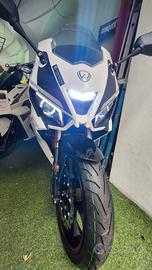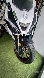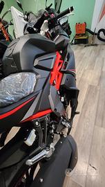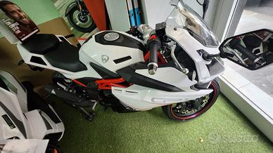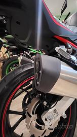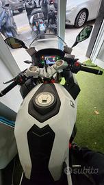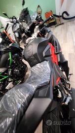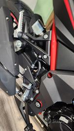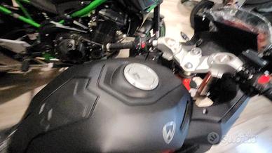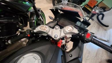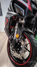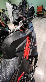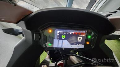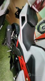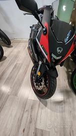 Cupolino forcellone in alluminio-steli rovesciati da 37mm telaio multi tubolare mono ammortizzatore posteriore regolabile nel precarico doppio freno anteriore da 300mm posteriore da 240mm tutto con pinze radiali tutto euro 5 +