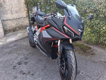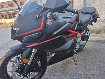 telaio concepito con un chiaro orientamento verso il mondo delle corse, si combina con un motore monocilindrico raffreddato a liquido.Il posto di guida progettato per offrire comfort e facilit di guida per un utilizzo quotidiano, grazie all'altezza sella di 760 mm che permette alla maggior parte degli utenti di toccare il suolo con entrambi i piedi. Allo stesso tempo, componenti come il cupolino, il semimanubrio e le pedane offrono al pilota la possibilit di godersi una guida pi sportiva, mantenendo un controllo assoluto e preciso.avantreno,che presenta un doppio freno a disco a margherita da 300 mm e pinze ad ancoraggio radiale a doppio pistoncino.Il tutto completato dalla robusta forcella anteriore di ampio diametro e dal monoammortizzatore posteriore125cc, monocilindrico, 4 tempi, 4 valvole, raffreddato a liquido Sospensioni Anteriore: Forcella telescopica (37mm)**Posteriore: Monoammortizzatore regolabile nel precarico Capacit del serbatoio 13,5 litri Pneumatico Anteriore: 110/70-17**Posteriore:150/70-17 Freni**Sistema di frenata combinata con pinze, a doppio pistoncino contrapposto, doppio disco anteriore da 300mm e disco singolo posteriore da 240mm Cambio Manuale, 6 marche