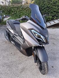 comfort di una moto da turismo con l'agilità di uno scooter, unendo tecnologia, design e prestazioni in un'unica, straordinaria, con un'erogazione fluida, stabile ed efficiente. Il telaio tubolare in acciaio ottimizza la distribuzione dei pesi e migliora l'agilità, mentre la sospensione posteriore regolabile nel precarico, con doppio ammortizzatore e serbatoio del gas separato, garantisce precisione e comfort di guida. La frenata, potenziata con ABS a doppio canale e pinza anteriore radiale a quattro pistoncini, assicura controllo e sicurezza in ogni situazione. dotazione tecnologica: schermo TFT touch da 7" con Screen Mirroring, avviamento senza chiave, telecamera frontale integrata, comandi retroilluminati, manopole riscaldabili e una notevole capacità di carico sotto la sella a doppia altezza con supporto lombare.