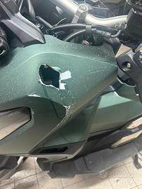 x adv 750 depotenziato, con qualche aggiusta da fare: frecce, scocca anteriore sinistra e un paramani ( intorno ai 750? di danno), il motorino presenta una pellicola verde militare, cupolino oscurato e ruote cambiate poco tempo fa pirelli