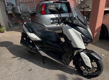Yamaha X Max 300 professionista vendo tenuto da amatore,tagliandi ufficiali Yamaha con fatture dimostrabili,optional (blocca ruote,bauletto e staffa dedicata come si vede in foto,tre parabrezza piccolo nero originale,trasparente originale più alto Givi,imbottitura vano sotto sella,porta navigatore con presa usb dedicata originale Yamaha)scooter visionabile a Napoli vendo o scambio con t Max.prezzo no trattabile