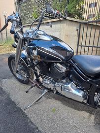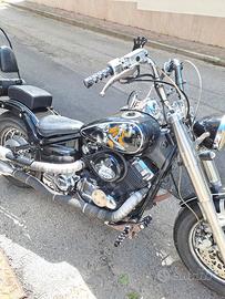 Vendo bellissima XVS Yamaha Dragstar 650 custom 1998. Serigrafata in alcuni punti specifici, come da foto. Borsa laterale in pelle. Selle, guidatore e passeggero, rifatte aumentando anche l'imbottitura interna. Rubinetto, apri-chiudi, della benzina. Ruota posteriore nuova al 90%. Batteria nuova al 80%. Presa per ricarica USB installata sul manubrio. Doppio scarico con terminale SUPERTRAP.