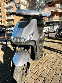 È un 50cc elettrico con doppia batteria, autonomia fino a 100 km e due modalità di guida fino a 50 km/h. È completo di bauletto nuovo, vano portaoggetti e cavalletto laterale e centrale.