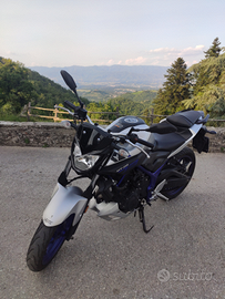 Km 21.000, la moto possiede ABS sì (sistema antibloccaggio ruote), tipologia naked, cilindrata 300 cc (321 cc da libretto), 42 cv - 31 kw, benzina, motore bicilindrico quattro tempi, numero marce 6, colorazione icon Yamaha, adatta per neopatentati o prime esperienze nella categoria A/A2, prima immatricolazione 06/2016, secondo possessore.