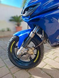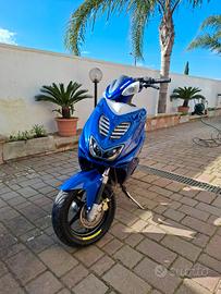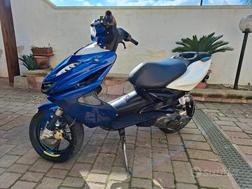 Vendo Yamaha aerox 50 con carene quasi nuove, gruppo termico 50 in rodaggio, ,puleggia e variatore polini nuovo, radiatore con vaschetta liquido nuovi., pompa acqua nuovo. Lo scooter è completo di carena inferiore e kit adesivi Valentino Rossi racing, specchietti e altro materiale che verranno consegnati insieme allo scooter.