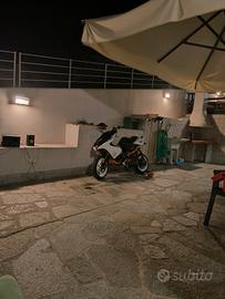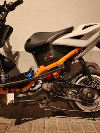 Svendo Aerox 70 stage 6 MK2 nuovo con solo 80 km , ancora in rodaggio . Accoppiato con roost rs5 Carburatore 21 e filtro artigianale . Trasmissione abbiamo un multivar Malossi e frizione Polini 3G con campana e correttori di coppia Top Performance. Kit Carene BCD (do anche sottoscocca bianco BCD) La moto è ferma da un anno e mezzo per perdita di interesse , lavoro sulla mia auto ora Ci sono segni e spaccature su alcune carene e mancano due bulloni per la sella che balla un po' . La moto parte ma gli manca l'ingranaggio per la pedivella perché rotto e non ricomprato più , ma posso farla partire con trapano avvitatore . Per maggiori informazioni contattatemi , VORREI VENDERE ABBASTANZA URGENTEMNETE .