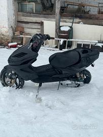 inoltre sono stati eseguiti molti lavori puramente estetici,come carenature nuove fanale posteriore led ecc, per qualsiasi informazione scrivete , lo scooter attualmente è in grado di raggiungere la velocità di 115 km/h in completa affidabilità