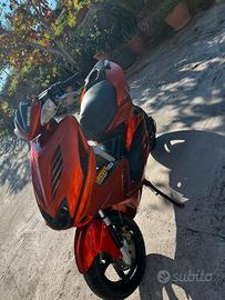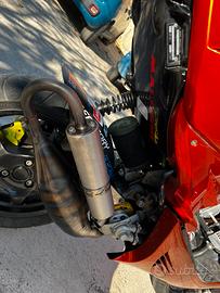 Monta i seguenti pezzi: cilindro stage6 rt 70cc, albero rhq malossi Biella 85, radiatori Kawasaki 125, Marmitta jolly moto, selettra malossi programmabile, kit aspirazione compreso di pacco lamellare stage6, carburatore 28 polini, forcelle rifatte da poco irrigidite, variatore mhr 101, campana stage6 con frizione polini, rapporti malossi..... motore fatto da me e usato pochissimo solo qualche giro nel paese con pistone sostituito ed usato solo 2 volte (tutti i componenti sono stati comprati nuovi con scatole dimostrabili)