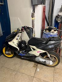 Vendo Yamaha aerox restaurato. Verniciato in carrozzeria, rifatto tutto. Monta 70 athena in alluminio monofascia, marmitta mhr malossi, variatore malossi, carburatore 19.5 dellorto. Alleggerimenti e gomme nuove. Prezzo pochissimo trattabile. Giuro finito rodaggio pochissime ore da quando è stato rifatto. Vendo perché non ho più spazio in garage