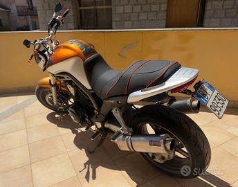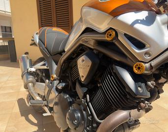 Yamaha Bulldog BT 1100, data immatricolazione 24/07/2003, 35000km circa, ha un paio di difetti, leggera ammaccatura nel serbatoio (in prossimità del tappo del serbatoio) dalla 1^ marcia salta in folle, le restanti marce non saltano. Lavori eseguiti recentemente: indicatori di direzione a led, pastiglie anteriori, pastiglie e disco posteriore, filtro olio e filtro benzina, olio Motul 5100, sostituzione filtro originale con filtro k&n, (tagliando completo 0km all’attivo) cover sella personalizzata logo bulldog, leve freno e frizione con inciso logo bulldog, specchietti, batteria maggiorata, potenziamento motorino avviamento per un migliore avviamento, maggiorazione cavi impianto elettrico, bobine maggiorate Dynatek Miniature Coil Dyna 3 ohm. Ho recentemente acquistato nuovo fanale a led che sarà da montare. La moto è marciante, attualmente è senza assicurazione e senza revisione.