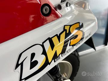 Yamaha BW'S Prima serie . Scooter estremamente originale in tutte le parti che mantiene sella monoposto , cerchi da 10 pollici e freni a tamburo . Rara versione in colore Bianco/rosso .