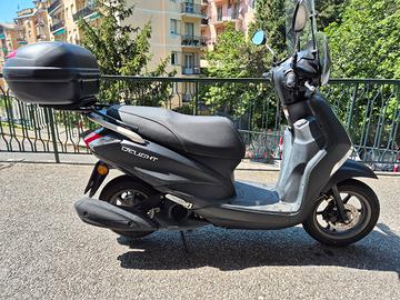 Vendo Yamaha D’elight 125 (2022) – solo 5.000 km Vendo scooter Yamaha D’elight 125 immatricolato nel 2022, con soli 5.000 km. Il mezzo è in perfette condizioni e viene utilizzato quotidianamente per il tragitto casa-lavoro, motivo per cui il chilometraggio è in leggero aumento. Scooter leggerissimo, estremamente maneggevole e perfetto per la città. Consumi molto ridotti: ho rilevato personalmente circa 44 km/l, ma con una guida ancora più tranquilla possono essere anche superiori. La sella bassa lo rende adatto e sicuro anche per persone di statura più contenuta. Ottima capacità di carico: dispone di un ampio bauletto che può contenere un casco integrale più un secondo casco, oltre a un capiente vano sottosella in grado di ospitare un altro casco. Esteticamente presenta solo un leggero graffio sul lato frontale, come visibile in foto. Ideale per chi cerca un mezzo affidabile, economico e pratico per gli spostamenti urbani. Per maggiori informazioni non esitare a contattarmi.