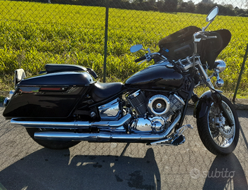 Vendo Yamaha dragstar 1100 ,leve arrow ,pompa freni.dpm ,coprinclacson dpm ,gomme con 3 mila km ,pedane larghe ,ruota libera già modificata, motorino avviamento nuovo.com camicia anti avvolgimento, autoradio con casse da 16 ,voltometro ed orologio ,fari frecce fume ,interruttore per staccare corrente ad autoradio e accessori ,porta cellulare ,presa usb,batwind ,borse streetglide .tutto a 5 mila non trattabili