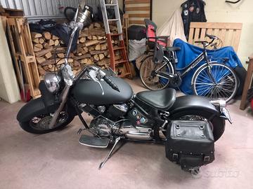 vendo per cambio tipologia yamaha dragstar del 2001. bobberizzata. la moto ha 90000 km... rettificato cilindri e cambiato i pistoni nel 2024...da allora avrò percorso forse 500 km. tagliando estate scorsa, ruota libera nuova batteria ha una settimana di vita. ruota posteriore nuova, anteriore 90%. scarico (aperto) e manubrio sono harley-davidson. borsone pelle molto capiente con borchie a teschio...gira come un violino e non perde una goccia d'olio...vendo a 3500 € trattabili astenersi affaristi e perditempo...