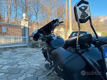 Per cambio tipologia, dopo 10 anni vorrei una moto da offroad, vendo questa bellissima draghetta con soltanto 17000 chilometri reali. Moto iscrivibile FMI con bollo ridotto(già esiguo) ed assicurazione agevolata. Usata poco e solo nella bella stagione, mai incidentata o caduta, revisionata a livello di carburatori ed elettronica, tagliando fatto ad agosto, con candele nuove e filtri benzina ed olio nuovi, con olio nuovo naturalmente. Rubinetto benzina nuovo. Scarico omologato silvertail con sound pieno, corposo e filtro aria Hypercharger con le asole mobili in aspirazione tipo auto americana (quindi aggiunto circa 15 cv ai 40 di serie per un totale di 55cv) Attualmente ho montato un batwing nero e due borse in pelle nere. Batteria nuova e gomme al 80%. Specchietti aggiuntivi cromati da installare a forma di quadrifoglio Includo anche un set di scarichi drag pipes tubi dritti e vuoti, praticamente da raduno. Ho ancora gli indicatori di direzione color arancio originali, invece al momento ci sono su quelli trasparenti Disponibile anche il filtro aria originale rotondo. Contatto solo a persone realmente interessate. Così come è accessoriata il prezzo diventa poco trattabile. Accetto scambio soltanto con X Cape 700, x cape 650 o moto da turismo similari. Moto visionabile su appuntamento a val della torre